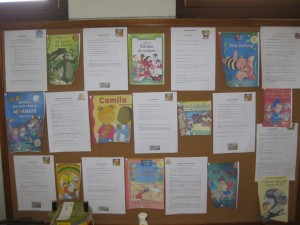 A dada altura do ano, surgiu a ideia que seria bom mostrarmos às outras turmas da nossa escola o nosso projecto, e deste modo, motivar os outros alunos para a leitura, observando os livros que já lemos e os vários tipos de fichas de leitura que preenchemos. Para tal, resolvemos fazer uma pequena exposição nos corredores da nossa escola.