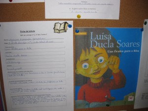Sempre que cada um terminasse uma história preencheria a respectiva ficha de leitura, onde constam diversos elementos, nomeadamente: título do livro, autor, ilustrador, editora, ISBN, quais as principais personagens, data do início/fim da leitura…