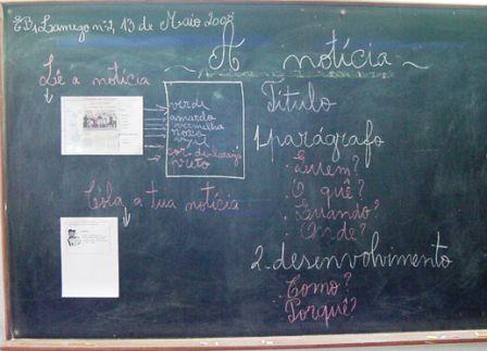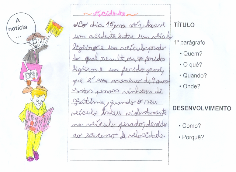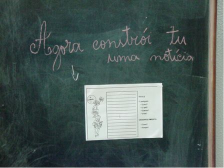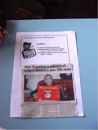 Trabalhámos as partes constituintes da notícia, recortando diferentes notícias e identificado as partes que a constituíam: