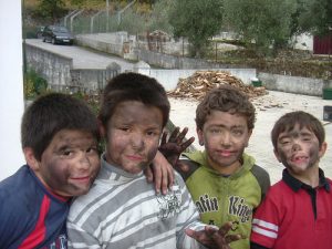 A seguir deslocámo-nos para trás da escola, onde estava uma grande fogueira com castanhas a assar. Comemos castanhas, bebemos sumo, brincámos e enfarruscámos-nos uns aos outros.