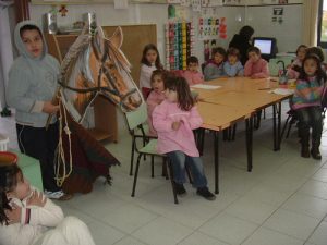 Realizámos várias actividades: ouvimos e vimos em Powerpoint a história da Maria Castanha e a Lenda de São Martinho; entoámos canções e assistimos a um teatro apresentado pelos alunos do 2.º ano .